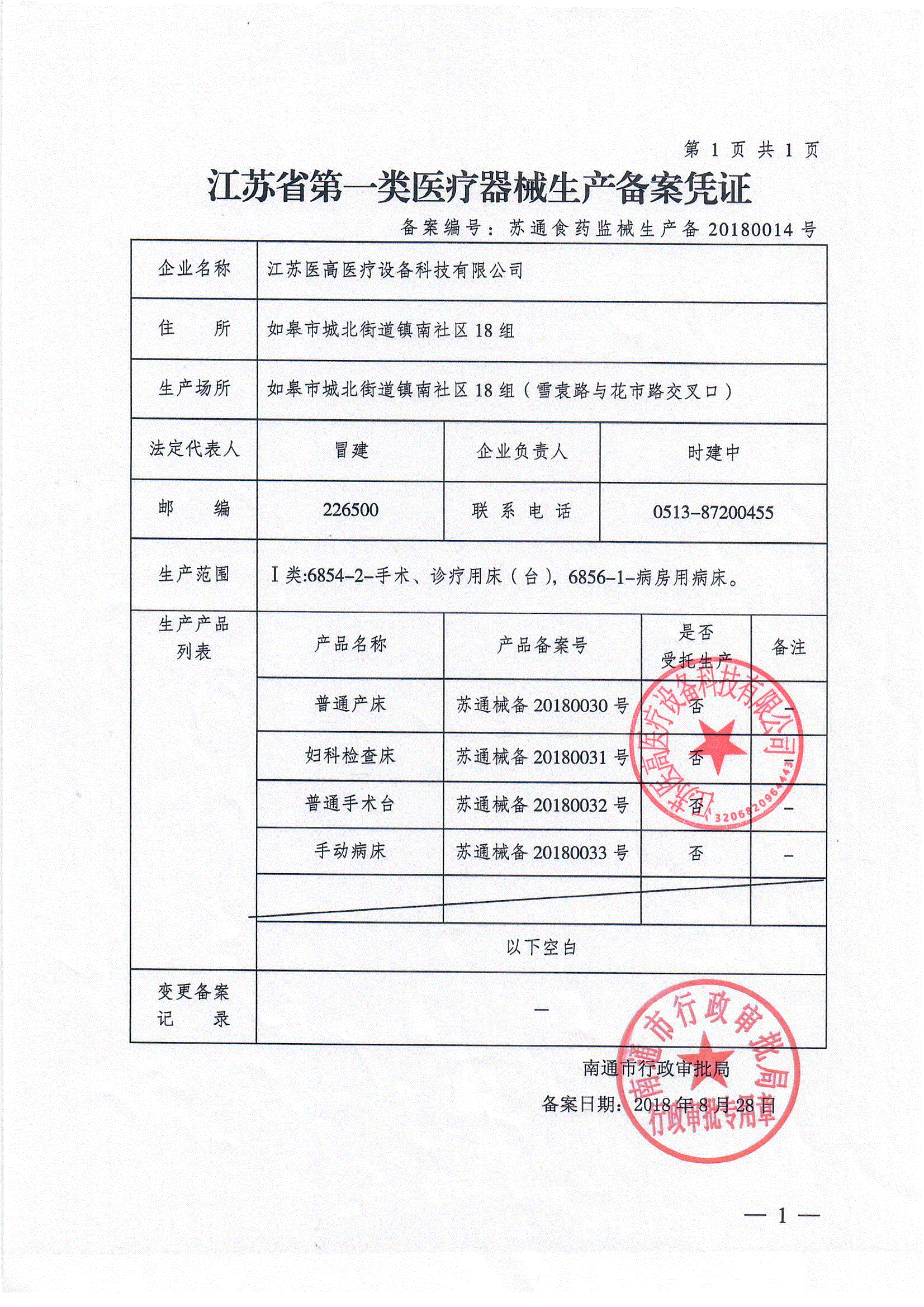 江蘇醫(yī)高醫(yī)療設(shè)備科技有限公司位于素有“中國(guó)近代第一城”美譽(yù)之稱的南通。瀕江臨海,距南通機(jī)場(chǎng)、南通火車站僅20公里路程,與上海隔江相望,交通十分便捷。專業(yè)從事醫(yī)療器械的研發(fā)、生產(chǎn)和銷售,下設(shè)手術(shù)床、無(wú)影燈、醫(yī)用吊塔、牽引床、病床、護(hù)理設(shè)備生產(chǎn)型企業(yè)。具有豐富的醫(yī)療器械、生產(chǎn)經(jīng)營(yíng)管理經(jīng)驗(yàn)和理念,竭誠(chéng)為客戶提供優(yōu)質(zhì)的服務(wù)。
